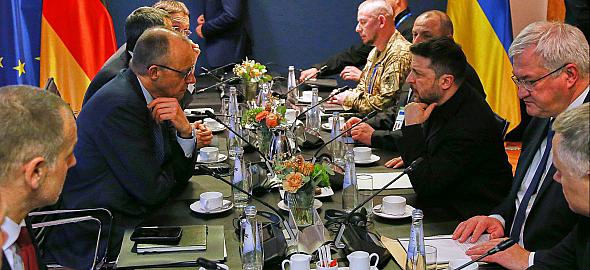 Bei einem Treffen von Partnern der Ukraine im sogenannten Berlin-Format am Rande der Münchner Sicherheitskonferenz haben die Teilnehmer Kiew eine "neue Anstrengung" in der Energiehilfe für das kriegsgebeutelte Land zugesagt. Damit wolle man die Folgen der anhaltenden Luftschläge gegen die zivile Infrastruktur lindern, hieß es am Freitagabend aus deutschen Regierungskreisen. In dem "offenen und konstruktiven Austausch" seien konkrete Schritte im gemeinsamen Krisenmanagement und der Rüstungsunterstützung diskutiert worden. Teilnehmer der Runde waren neben Kanzler Friedrich Merz und dem ukrainischen Präsidenten Wolodymyr Selenskyj die Präsidenten bzw. Regierungschefs aus Frankreich, Finnland, Großbritannien, Polen, Norwegen, Dänemark, Schweden, Estland, den Niederlanden sowie die Spitzen von Nato, EU-Rat und EU-Kommission sowie die Außenminister Italiens und Kanadas. Zuvor hatte sich Merz bilateral mit Selenskyj getroffen. Dabei ging es deutschen Regierungskreisen zufolge um die aktuelle Kriegssituation und den Stand der Verhandlungen mit Russland und den USA. Außerdem wurde über die aktuellen Fragen der Rüstungskooperation und der zivilen Hilfe für die Ukraine gesprochen. Merz habe Selenskyj dabei erneut die Unterstützung Deutschlands zugesagt, verlautete nach dem Treffen. © dts Deutsche Textservice Nachrichtenagentur GmbH