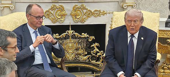 Bundeskanzler Friedrich Merz (CDU) hat nach Angaben von US-Präsident Donald Trump mit ihm über "einige sehr große Handelsabkommen" gesprochen. "Diese werden jetzt ausgearbeitet", sagte Trump am Dienstag in Anwesenheit des Kanzlers im Oval Office bei der traditionellen Pressebegegnung, ohne weitere Details zu nennen. Merz sei mittlerweile ein Freund geworden, die Handelsbeziehungen zu Deutschland seien "großartig". "Wir konnten gute Deals abschließen", sagte Trump. Der Bundeskanzler versicherte dem US-Präsidenten bei seinem sehr kurzen Redebeitrag, die USA bei dem Vorgehen gegen den Iran zu unterstützen. Bei der Pressebegegnung ging es anschließend auch hauptsächlich um den Angriff auf den Iran. "Ich dachte, dass sie zuerst angreifen, das wollte ich nicht geschehen lassen", sagte Trump über den Iran. Mittlerweile sei fast das gesamte Militär im Iran ausgeschaltet. "Ein paar Raketen haben sie noch", sagte Trump. Kritik hatte der US-Präsident in diesem Zusammenhang an Nato-Partner Spanien. Die Spanier weigerten sich nicht nur, fünf Prozent ihres Bruttoinlandsproduktes in die Verteidigung zu investieren, sondern würden den USA auch verbieten, von dort Angriffe auf den Iran zu fliegen. "Wir werden alle Handelsbeziehungen zu Spanien aufkündigen", sagte Trump im Oval Office. Angesprochen auf seine Erwartung an Deutschland zeigte sich Trump zufrieden. Deutschland lasse die US-Flugzeuge starten und landen. "Wir erwarten nicht von Deutschland, dass sie Soldaten schicken", sagte Trump. Insgesamt setze er große Hoffnung in Deutschland gerade mit dem neuen Bundeskanzler. Der sei das Gegenteil von Angela Merkel, deren Migrationspolitik der US-Präsident erneut kritisierte. Noch einmal von Journalisten gefragt, wie er den Zollkonflikt mit der EU lösen wolle, zeigte sich Trump siegesgewiss und sah offenbar wenig Handlungsbedarf. "Wir haben gewonnen", sagte Trump. Die Zölle hätten die USA bereits "reich gemacht". © dts Deutsche Textservice Nachrichtenagentur GmbH