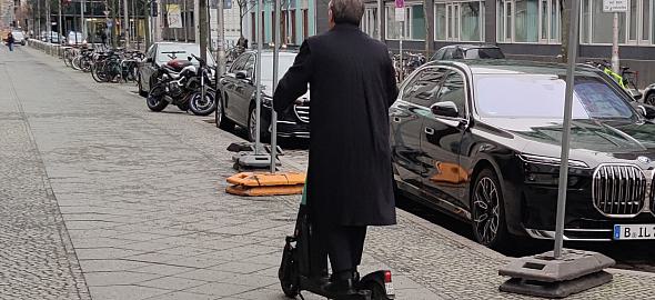 Laschet gilt als begeisterter E-Scooter-Fahrer und ist seit Jahren regelmäßig im Berliner Regierungsviertel auf Leih-Scootern zu sehen.