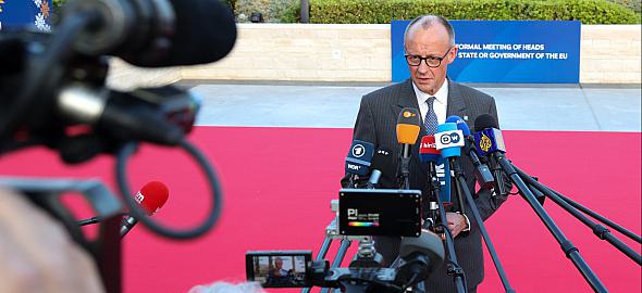 Bundeskanzler Friedrich Merz (CDU) hat die Freigabe des Darlehens für die Ukraine begrüßt. "Ich bin sehr dankbar, dass das Darlehen der Europäischen Union jetzt endgültig freigegeben worden ist", sagte Merz am Donnerstag am Rande des EU-Gipfels in Zypern. Ungarn hatte am Mittwoch nach einer viermonatigen Blockade dem Darlehen in Höhe von 90 Milliarden Euro zugestimmt. Der scheidende Regierungschef, Victor Orbán, hatte seine Zustimmung von der Reparatur der Druschba-Pipeline in der Ukraine abhängig gemacht. Der ukrainische Präsident Wolodymyr Selenskyj hatte am Dienstag verkündet, dass die von Russland beschädigte Pipeline wieder repariert ist, sodass wieder russisches Öl nach Ungarn fließen kann. Merz kündigte weitere Themen an, die man auf dem EU-Gipfel diskutieren werde. "Wir werden aber auch über den Konflikt im Iran sprechen, und wir werden über den mehrjährigen Finanzrahmen der Europäischen Union sprechen. Es sind viele Themen", sagte er. "Ich freue mich, dass wir Gelegenheit haben, auf der schönen Insel Zypern mit der Ratspräsidentschaft über die Themen unserer Zeit zu sprechen", so der Kanzler. "Ich bin sehr dankbar für die großzügige Gastfreundschaft." © dts Deutsche Textservice Nachrichtenagentur GmbH