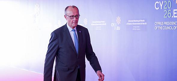 Bundeskanzler Friedrich Merz (CDU) will eine "Heranführungsstrategie" für die Ukraine an die Europäische Union. Ein sofortiger Beitritt sei "natürlich nicht möglich", sagte der Kanzler zum Abschluss des informellen EU-Gipfels am Freitag auf Zypern. Denkbar sei aus seiner Sicht aber, dass die Ukraine enger in die europäischen Institutionen eingebunden werde, beispielsweise durch die regelmäßige Teilnahme an EU-Ratssitzungen oder Parlamentssitzungen ohne Stimmrecht. Er habe beim Gipfel entsprechende Vorschläge gemacht und dafür Zustimmung bekommen, sagte Merz. Während des informellen Gipfels habe es zwar zumindest auf offener Bühne keine Widerstände gegen eine weitere Heranführung der Ukraine an die EU gegeben, er wisse aber, dass es im EU-Rat Vorbehalte gebe und entsprechende Verhandlungen sehr schwierig würden, sagte Merz. In Bezug auf die mittlerweile freigegebenen EU-Gelder für die Ukraine appellierte der Kanzler an die Mitglieder des eigenen Kabinetts, dies nun nicht zum Anlass zu nehmen, die Gelder aus bilateralen Vereinbarungen zu kürzen oder sogar ganz zu streichen. "Ich will jedenfalls die Zusammenarbeit mit der Ukraine fortsetzen", sagte Merz, dies sei unabhängig vom freigegebenen EU-Darlehen. © dts Deutsche Textservice Nachrichtenagentur GmbH
