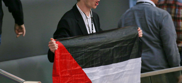 Wieder Pro-Palästinenser-Protest im Bundestag  Im Bundestag ist erneut eine Sitzung durch einen Pro-Palästinenser-Protest gestört worden. Während einer Rede von Außenminister Johann Wadephul (CDU) am frühen Mittwochnachmittag rief ein Besucher auf der Tribüne "Es gibt keinen Waffenstillstand" und hielt eine Palästinenserfahne hoch.